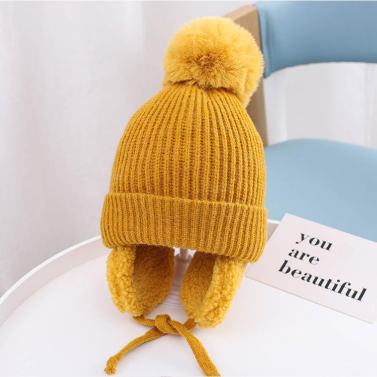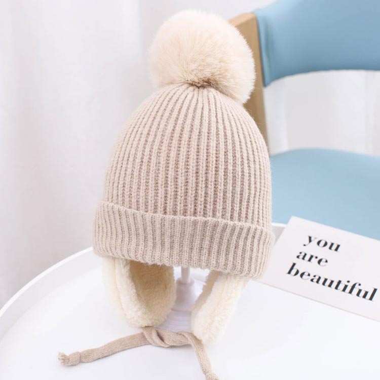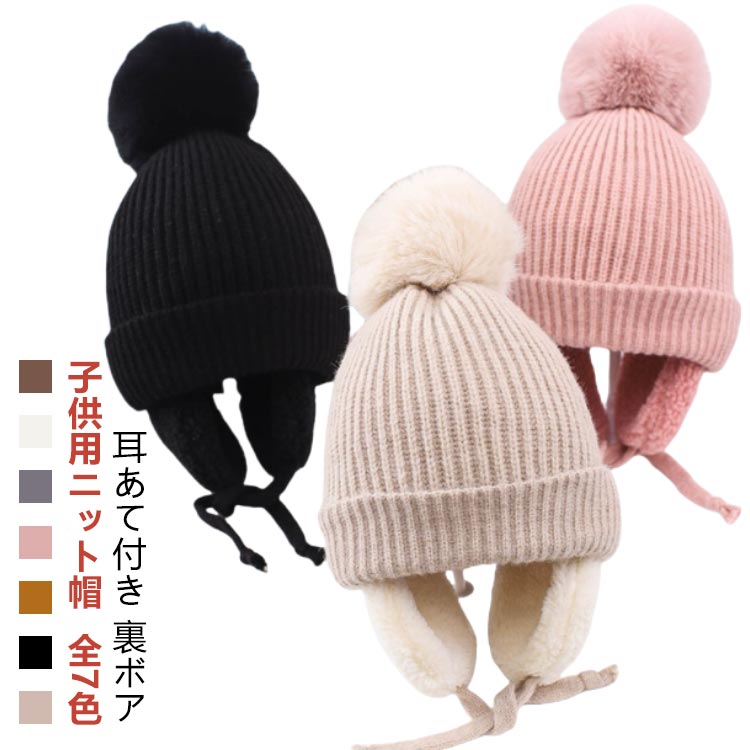 耳あて付き ニット帽 ポンポン付き 男 レディースファッション 超目玉商品 ブラウン アイボリー グレー ピンク イエロー ブラック ベージュ