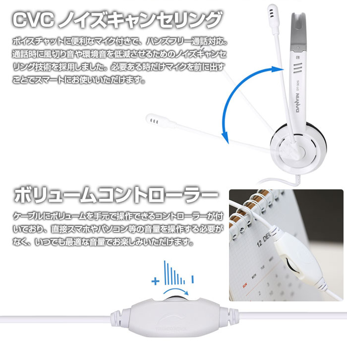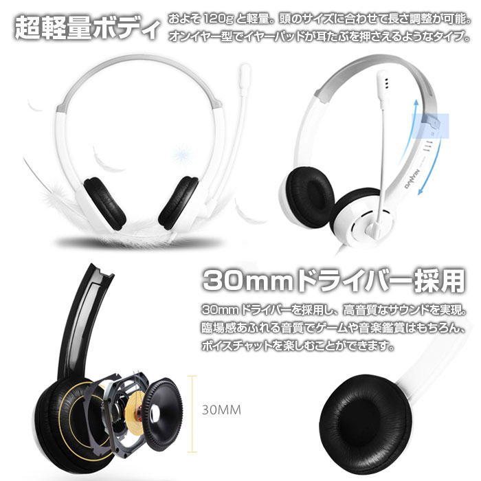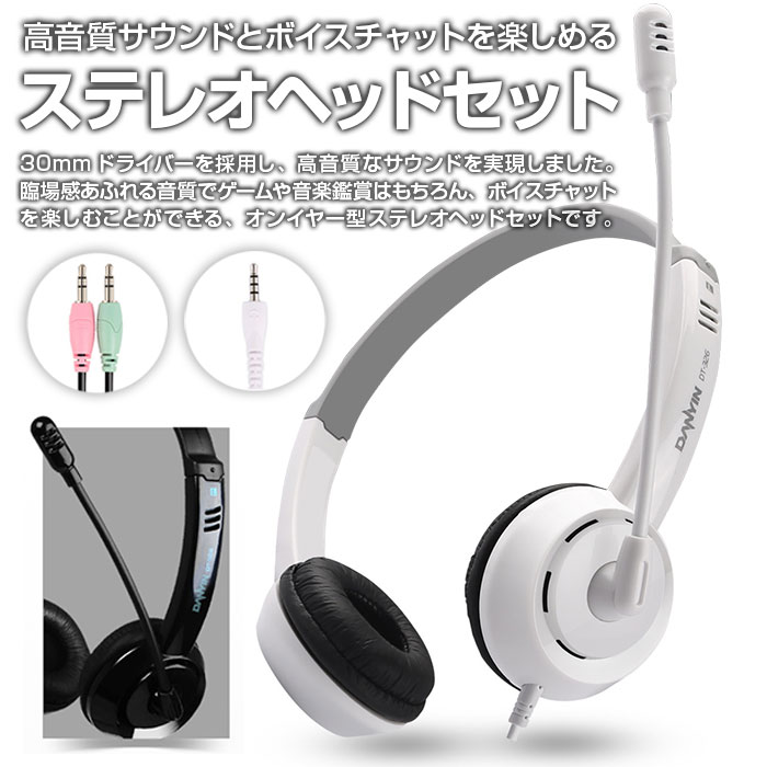 ステレオヘッドセット オンイヤー型 ヘ ブラック ホワイト 3極ステレオミニプラグ(分岐型) 4極ミニプラグ(一体型)