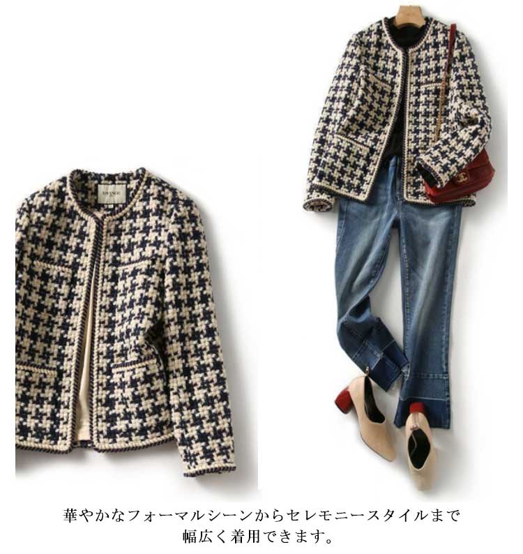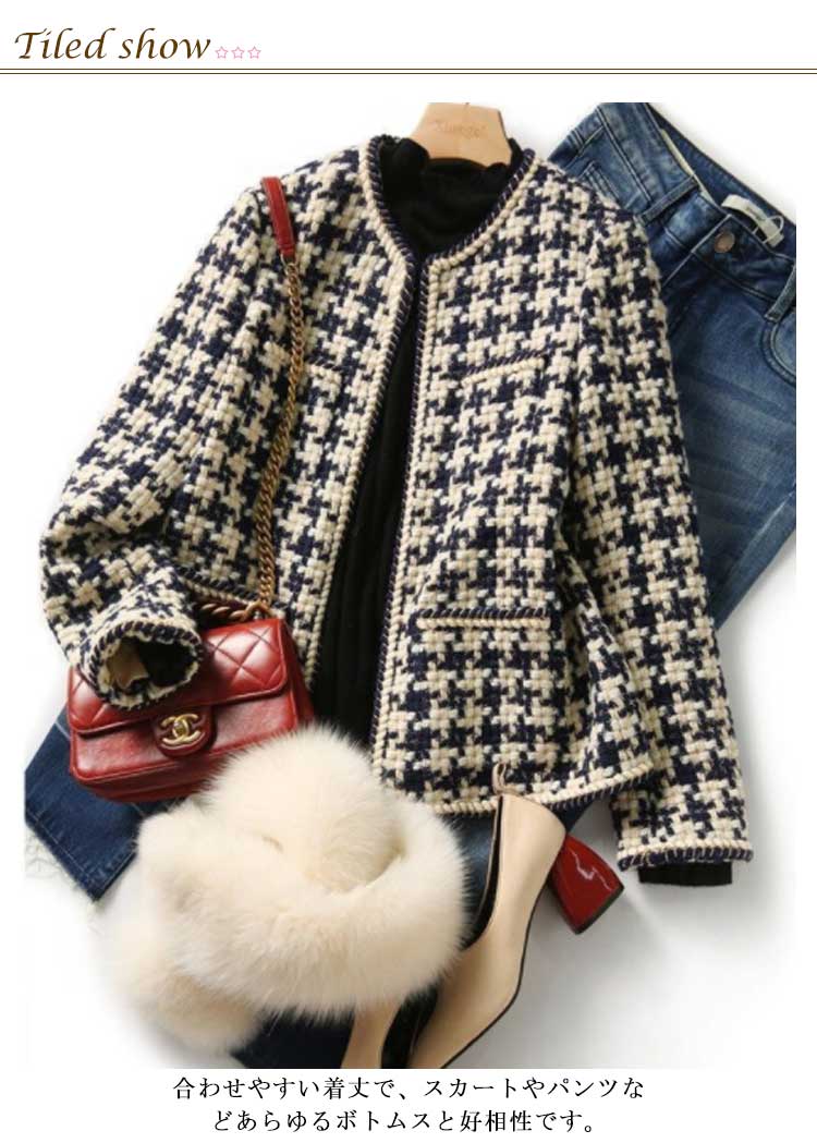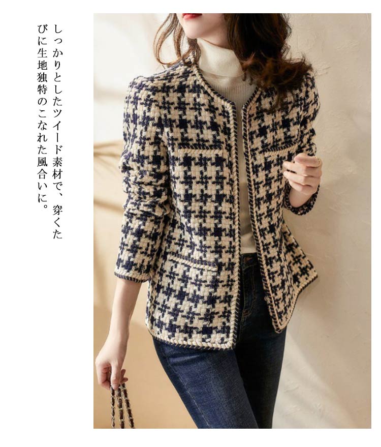 ツイードジャケット レディース 通勤 コート ジャケット 豊富な品揃え 写真色 写真色中綿入り M L XL 2XL 3XL