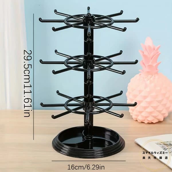 1pc 2層3層回転式16フック収納ラ ブラック 透明 2層回転可能 3層回転可能