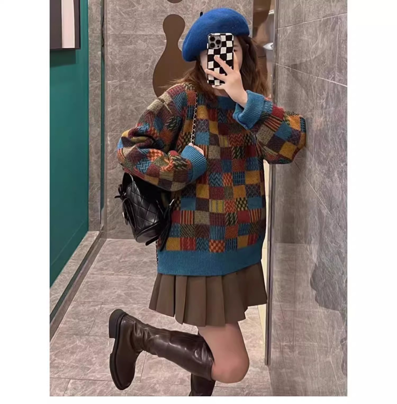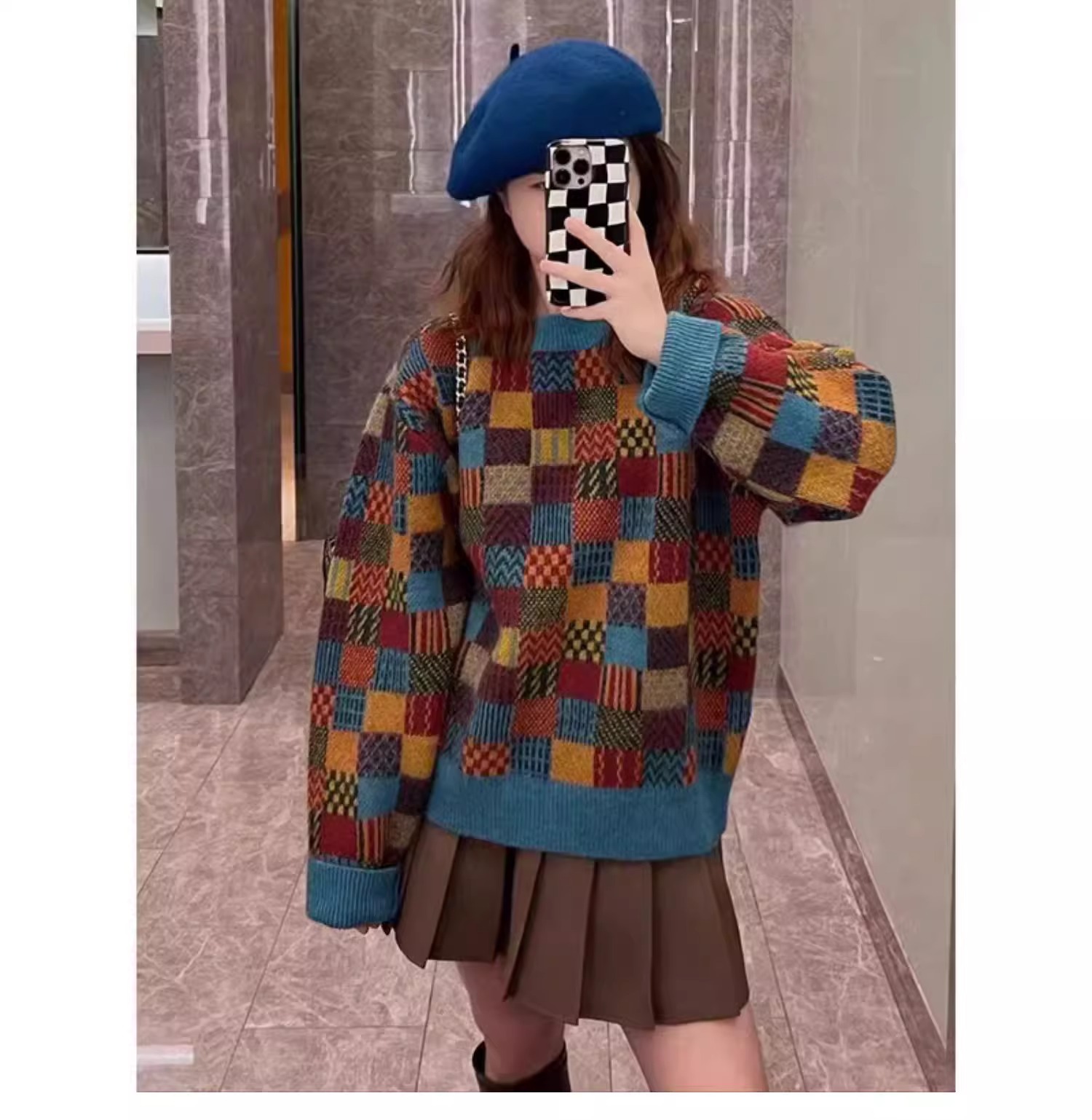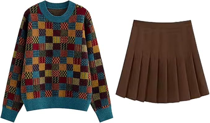 スカートスーツ レディース 2点セット レディースファッション 豊富 ニットセーター 茶色プリーツスカート セーター + スカート S M L XL