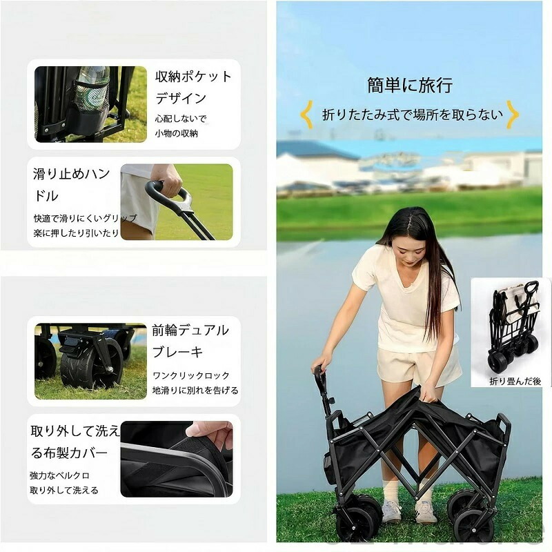 キャリーワゴン アウトドアワゴン 折り ブラック カーキ