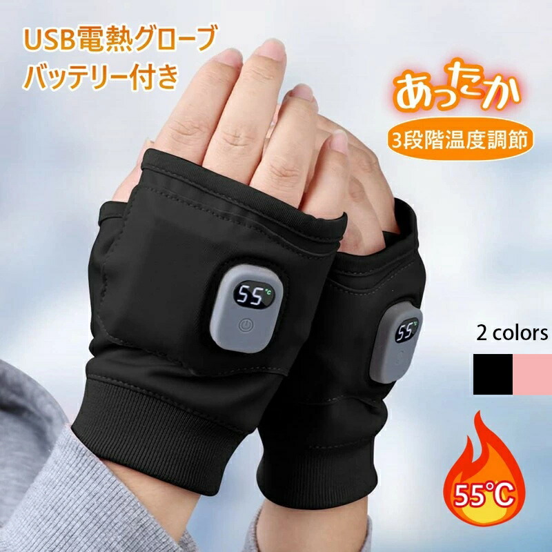 電熱グローブ レディース メンズ パソ ブラック ピンク