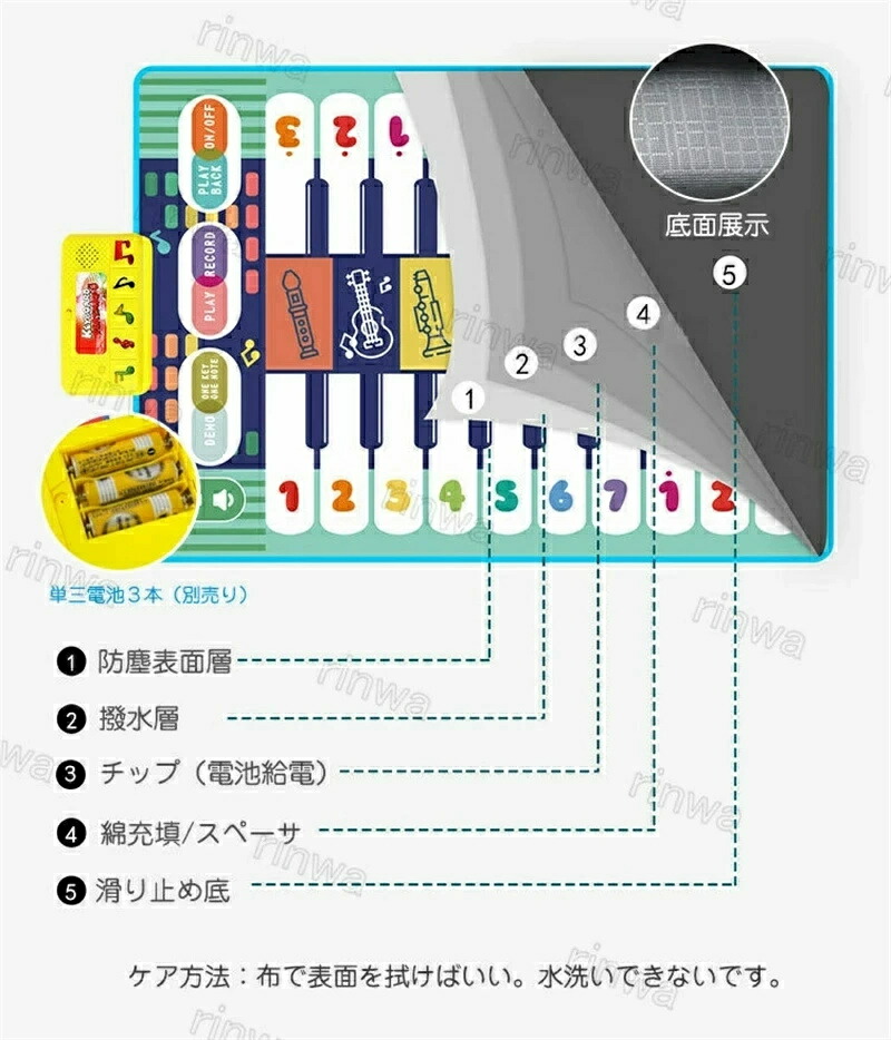 音楽マット 子供用 ピアノマット ミュ A B C D