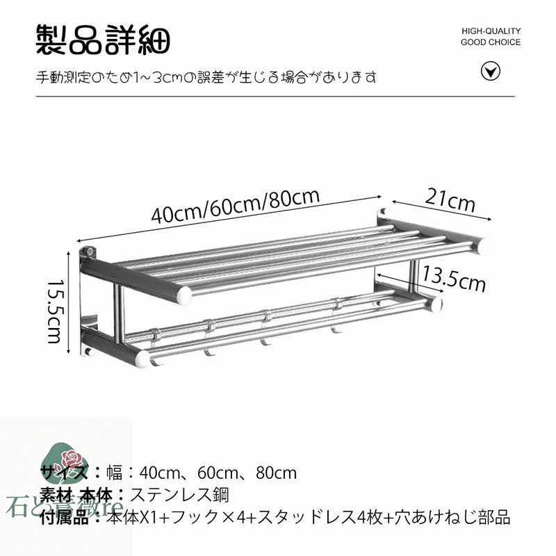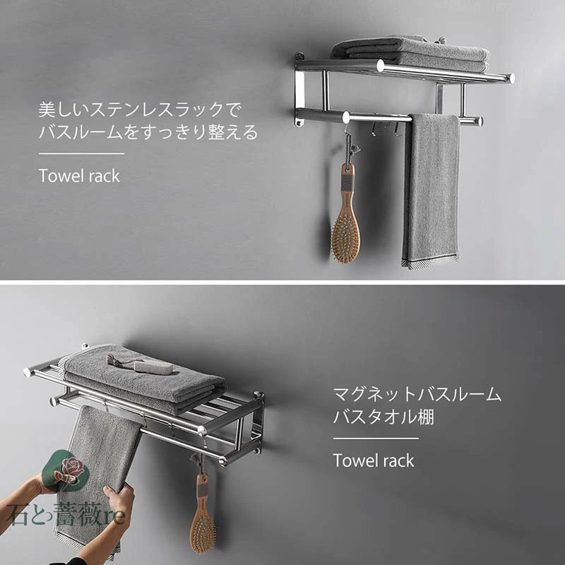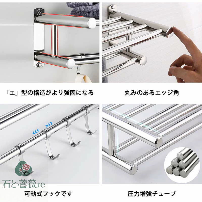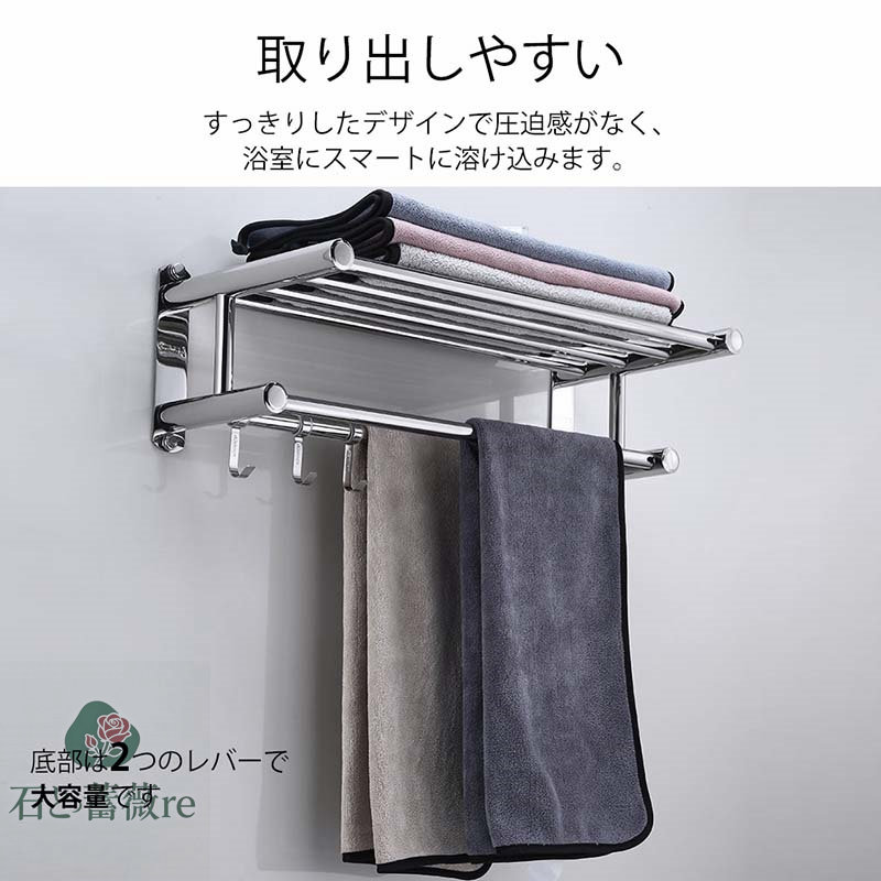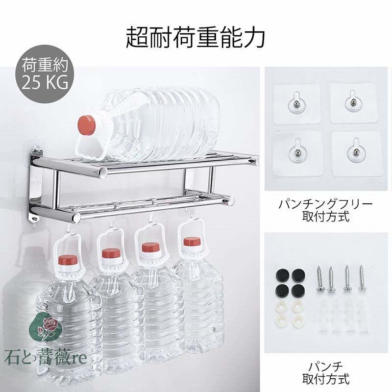 【外観】: 2層 のタオルレール、自由に動くフック、シンプルで実用的で。 接着剤で製品を貼り付けることもできますし、穴を開けて設置することもできます。 穴のない設置方法を使用して壁を効果的に損傷から保護します。