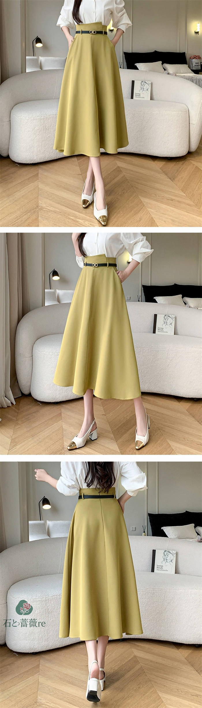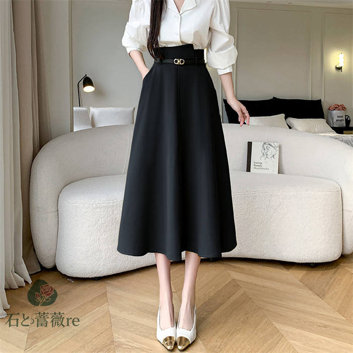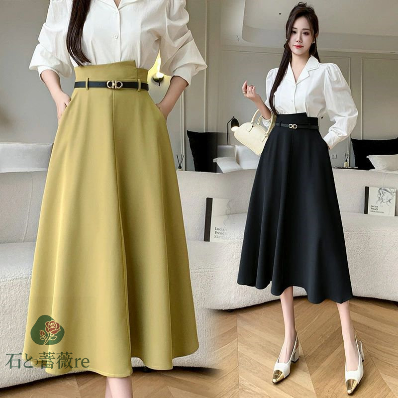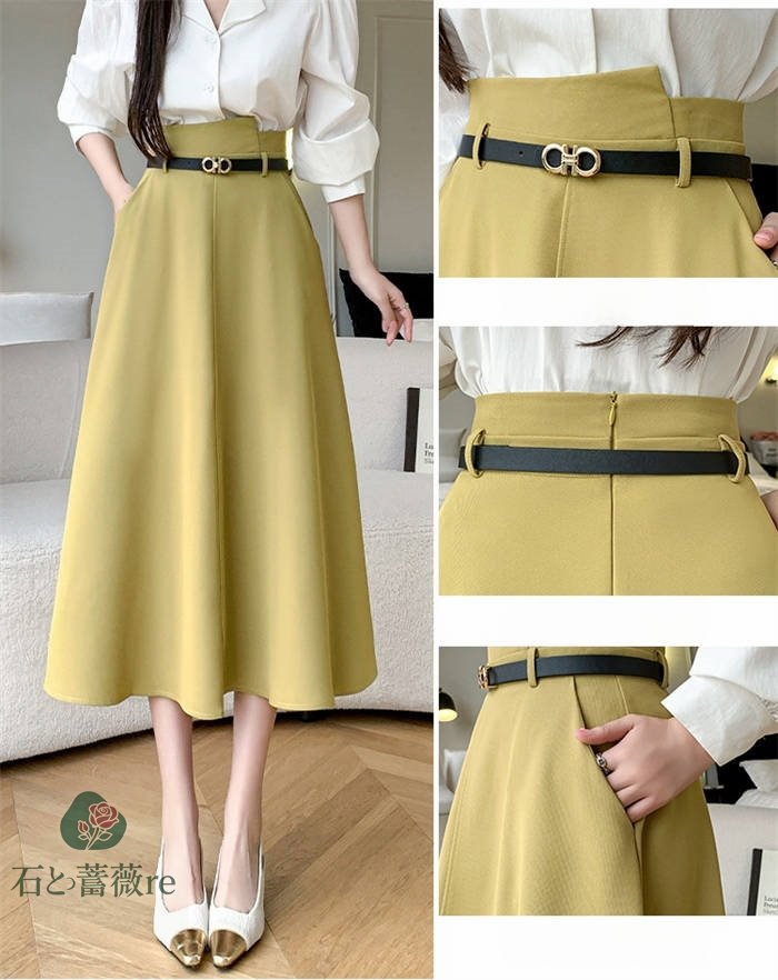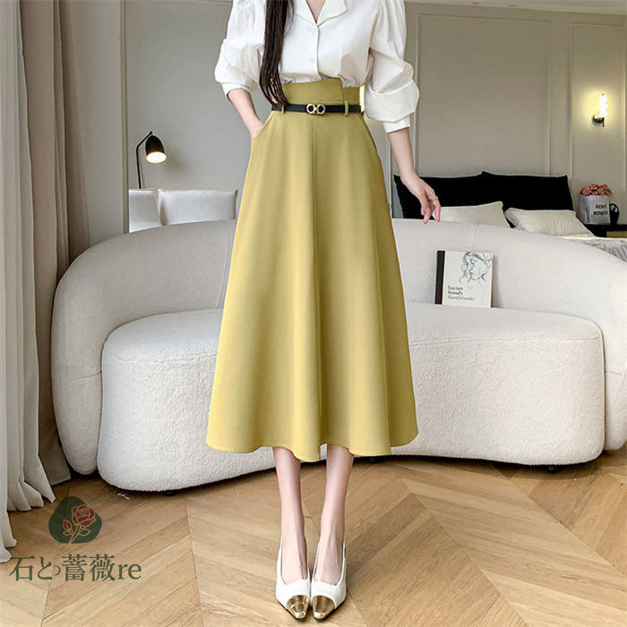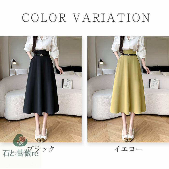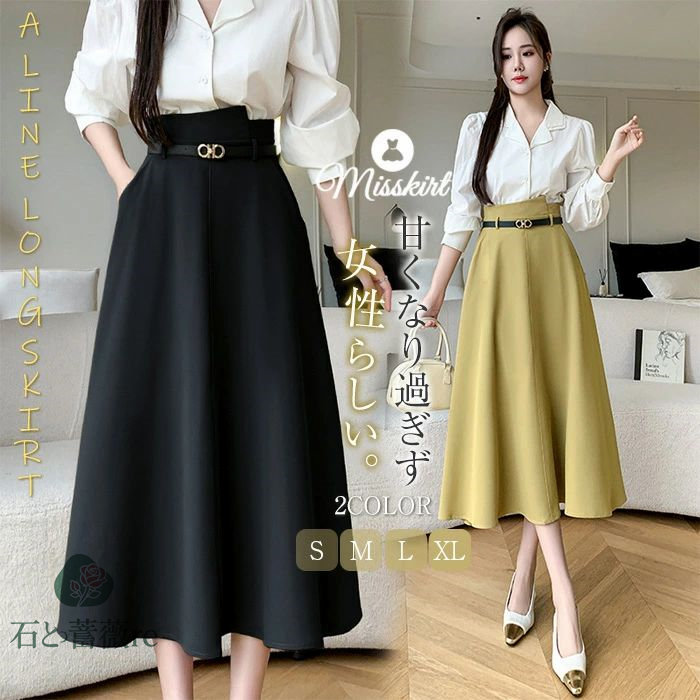 スカート aライン ロングスカート A ボトムス スカート 通販 ブラック イエロー S M L LL