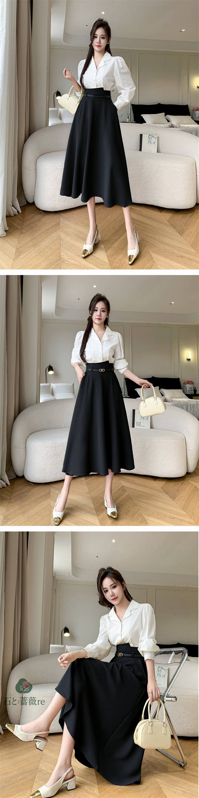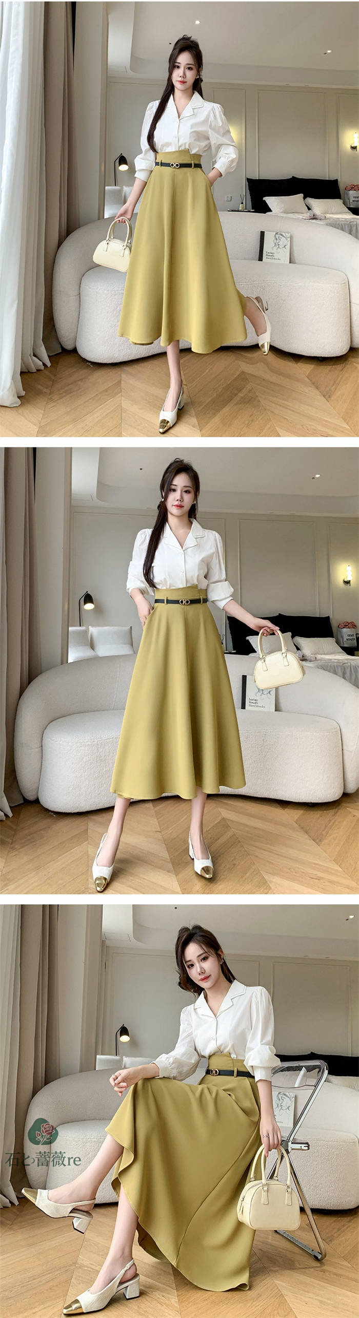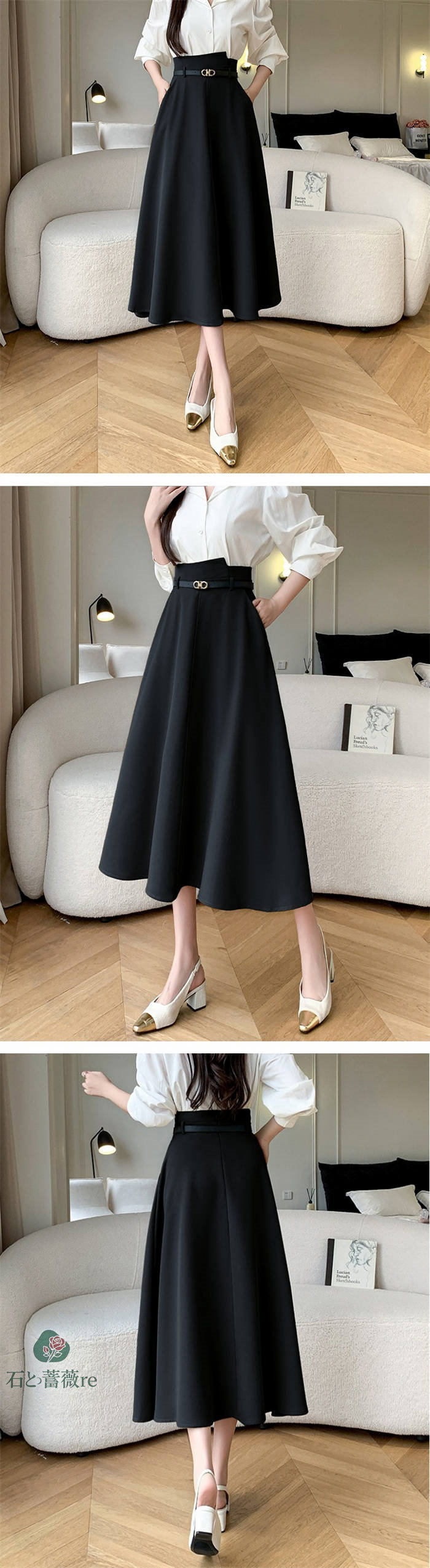スカート aライン ロングスカート A ボトムス スカート 通販 ブラック イエロー S M L LL
