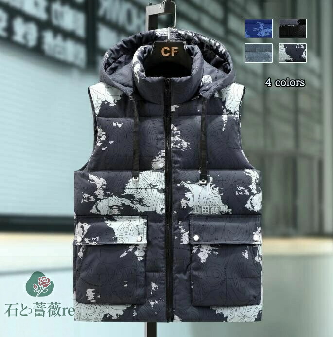 迷彩柄ダウンベスト メンズ ベスト レ メンズファッション 豊富な品揃え ブラック ブルー グレー ライトブルー S M L XL 2XL 3XL 4XL 5XL 6XL 7XL 8XL