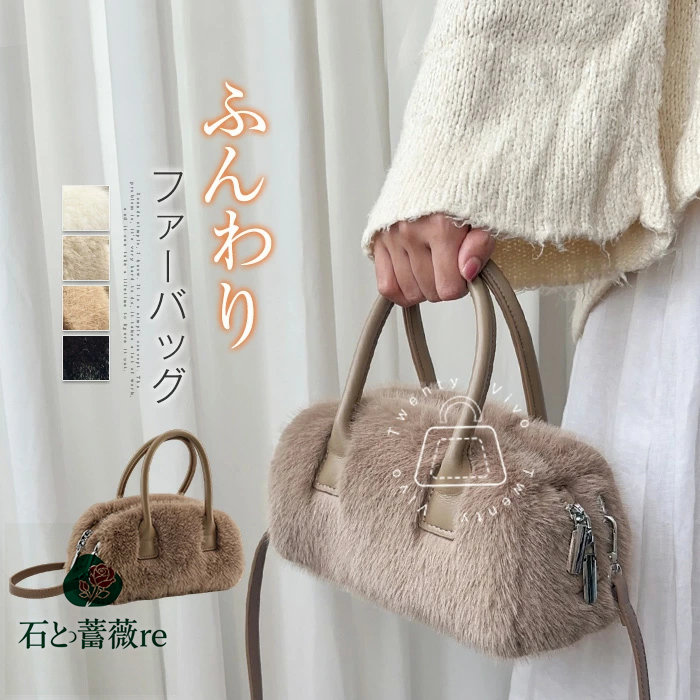 ファーバッグ レディース ハンドバッグ バッグ 小物 ブランド雑貨 新登場! オフホワイト ブラック キャメル ベージュ
