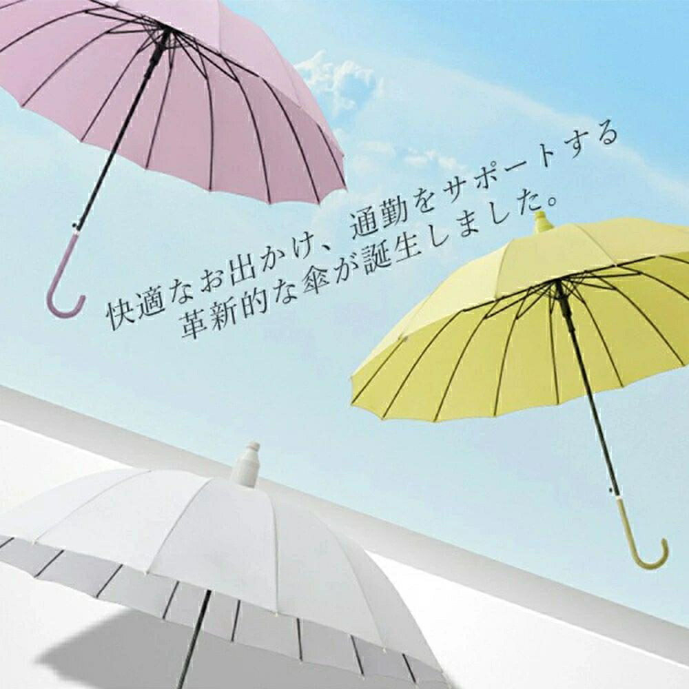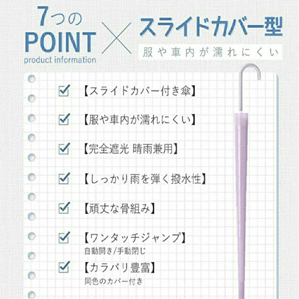 カバー付き傘 16本骨 伸縮スライドカバー付き 傘 レディース メンズ かさ 長傘 風に強い 防水 ワンタッチ 頑丈 丈夫 撥水 日焼け防止 紫外線対策 グラスファイバー 軽量
