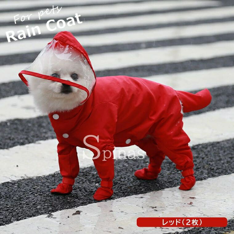 しっぽまで全身カバー ♪4色展開 2枚 犬用品 ドッグウェア レインコート 続々入荷中 グリーン(2枚) ピンク(2枚) レッド(2枚) ブラック(2枚) S M L XL 2XL