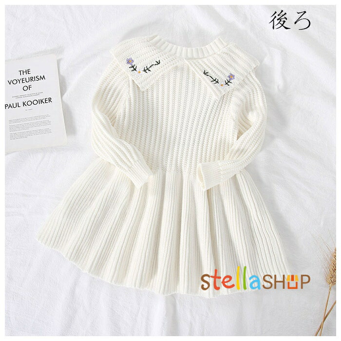 ニット ワンピース 女の子 花柄 刺繍 おしゃれ レッド ページュ キッズ 長袖 フォーマル 結婚式 姉妹 双子 普段着 通学 通園 韓国子供服