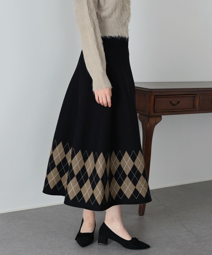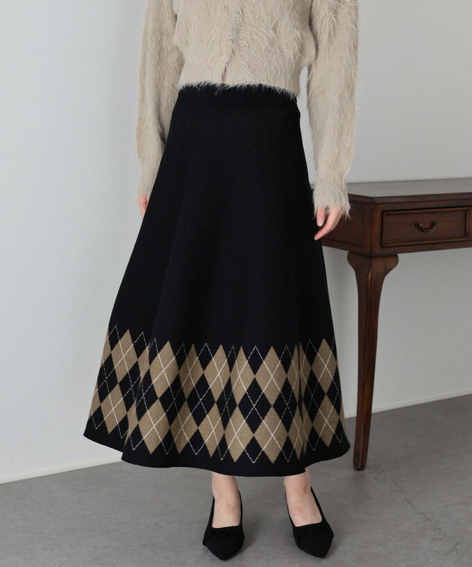 秋冬ニットスカート おしゃれスカート レディースファッション 特集 Mサイズ(01) Mサイズ(01)☆12月上旬入荷 アーガイル・グレー(0i) アーガイル・ブラウン(3d) アーガイル・ブラック(0b) チェック・ブラウン(30) チェック・ブラック(05)
