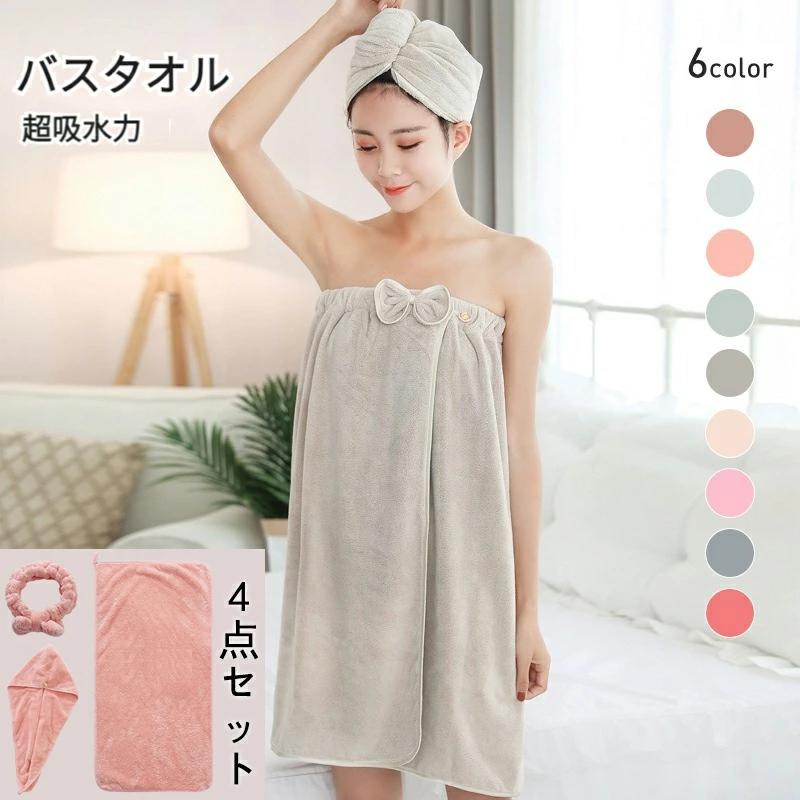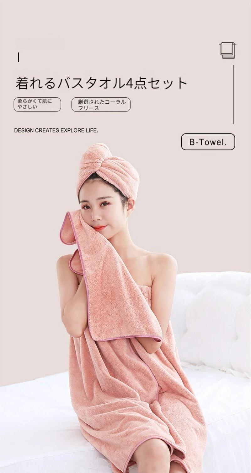 着るバスタオル 胸タオル 入浴 大きい タオル バスタオル 続々登場 サンゴ色(4点セット) オレンジ(4点セット) グリーン(4点セット) ライトグレー(4点セット) イエロー(4点セット) ピンク(4点セット) ダークグレー(4点セット) レッド(4点セット) 小サイズ 75×140cm 大サイズ 80×150cm