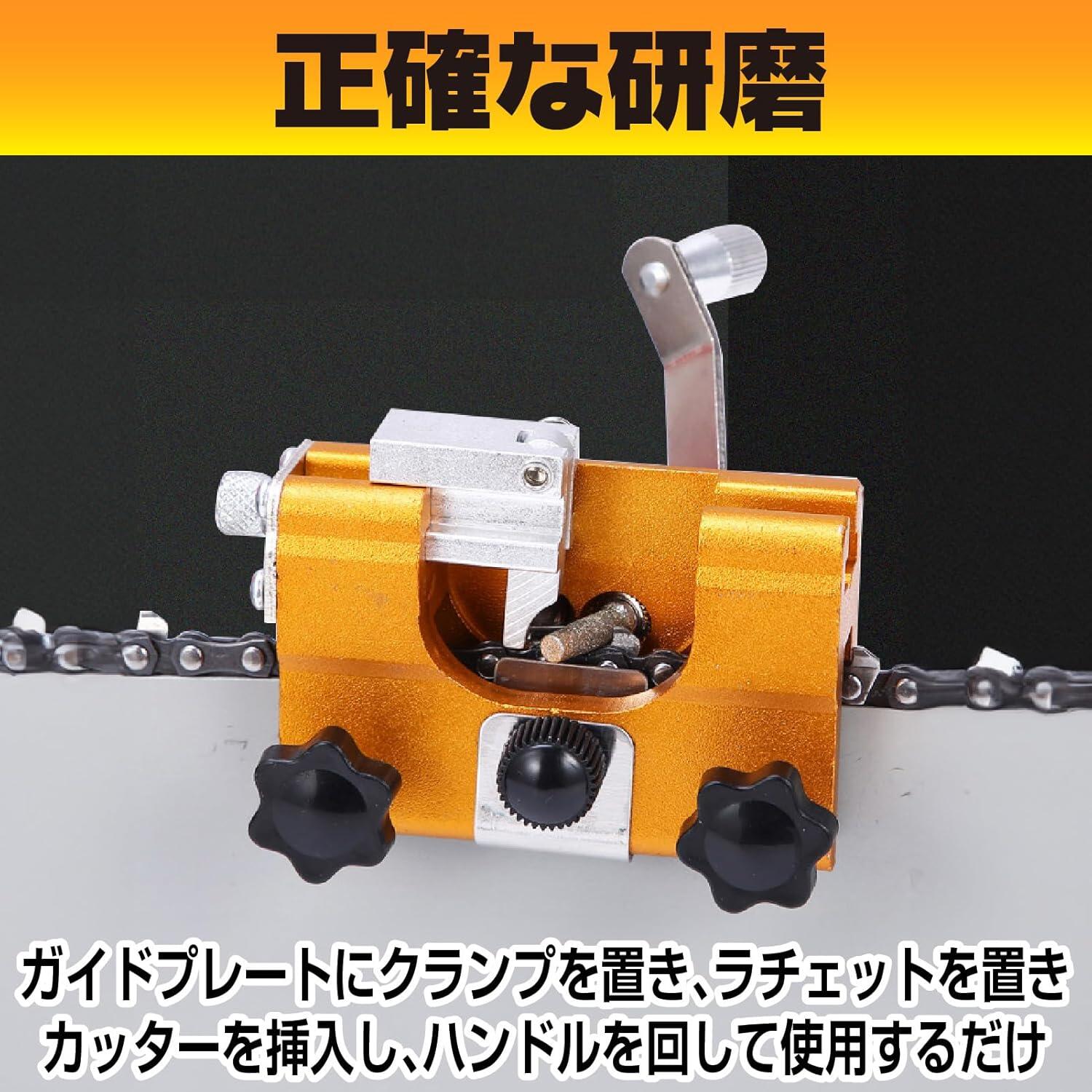 【多機能性とポータビリティ】: この目立て器はさまざまなタイプのチェーンソーに適しており、いつでも取り付けて使用することができます。ポータブルな設計により、短時間でチェーンを削ることができ、様々な場所での使用に適しています。