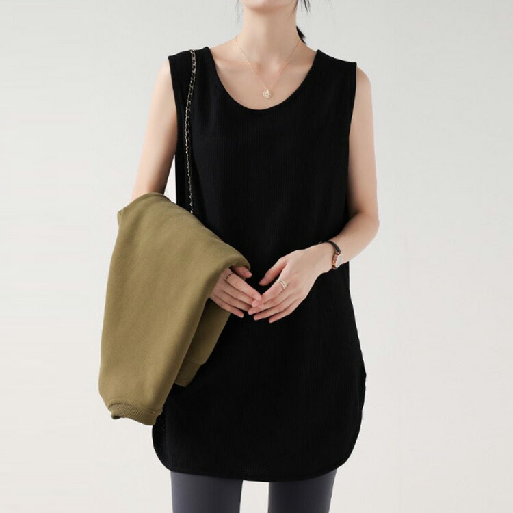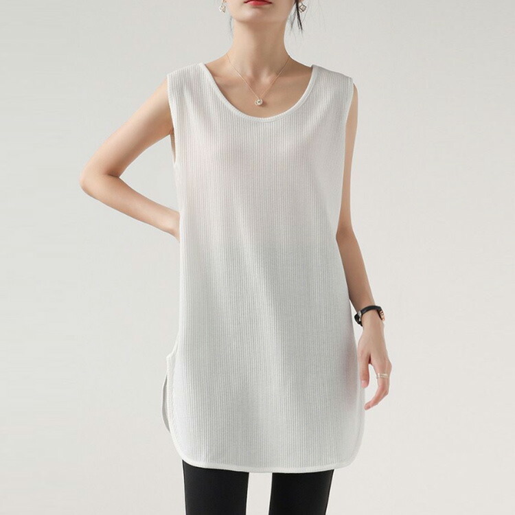 ラウンド裾 サイドスリット タンクトッ レディースファッション 早い者勝ち 白+黒 黒+グリーン グリーン+白 白+白 黒+黒 グリーン+グリーン M L XL 2XL 3XL 4XL