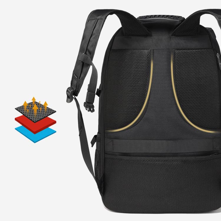 【隠された盗難防止ポケット】 リュックの裏にある隠された盗難防止ポケットに貴重品を収納できます。防刃素材を使用し、盗難を防ぎます。