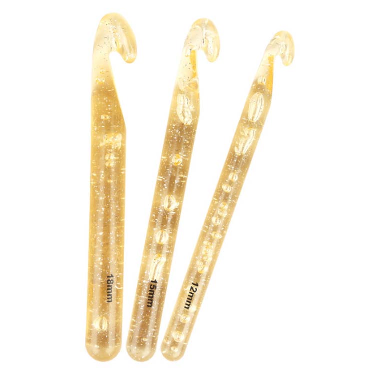 5本セット 編み針 水晶 かぎ針 極太糸も編める 極太かぎ針 高級感 オシャレ 編み物 手芸用品 ハンドメイド 12mm+15mm+18mm+20mm+25mm DIY 毛糸針 手芸