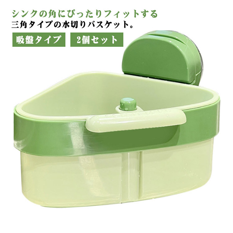 排水バスケット 三角コーナー 2個セッ キッチン用品 食器 調理器具 新登場! イエロー グリーン イエロー+グリーン