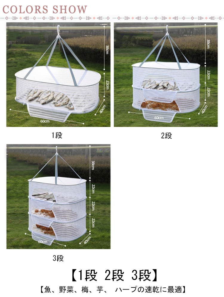梅干し 干しネット 干物 干しかご 網 1段 2段 3段 40*60cm 50*70cm
