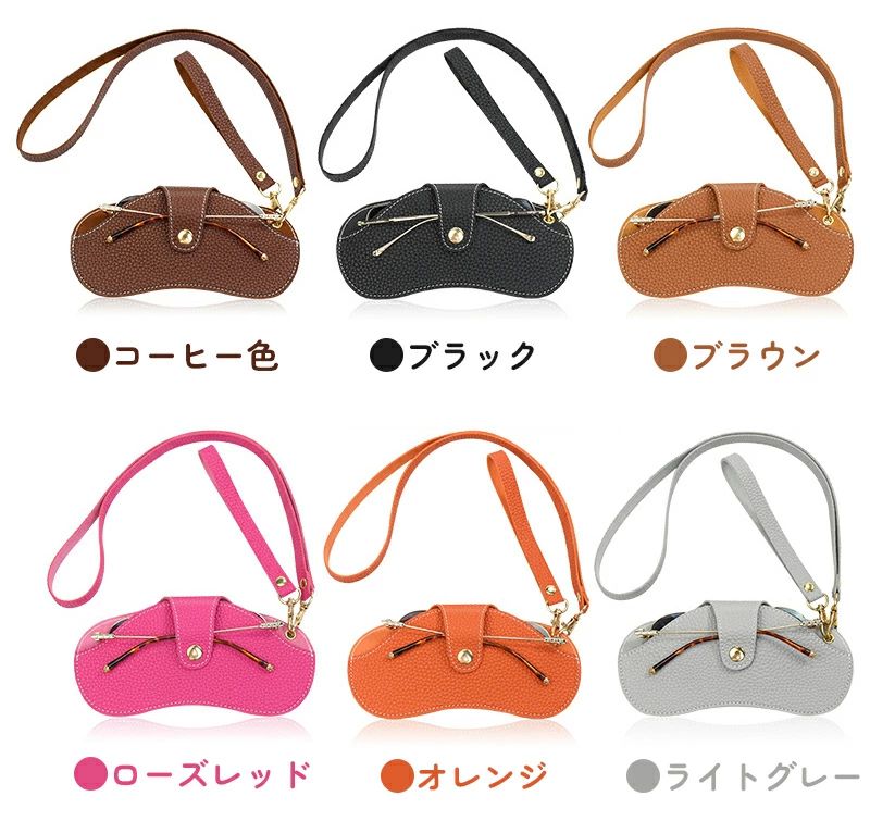 メガネケース ストラップ付き 首掛け バッグ 小物 ブランド雑貨 早い者勝ち ブラウン ブラック コーヒー色 ローズレッド オレンジ ライトグレー