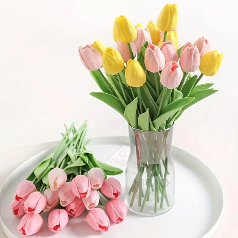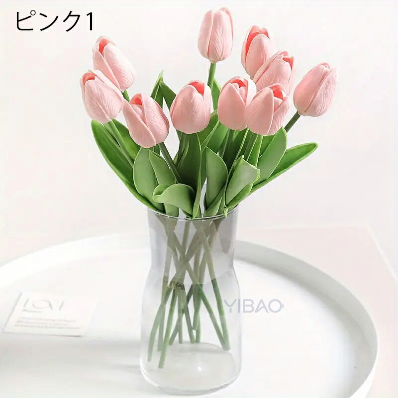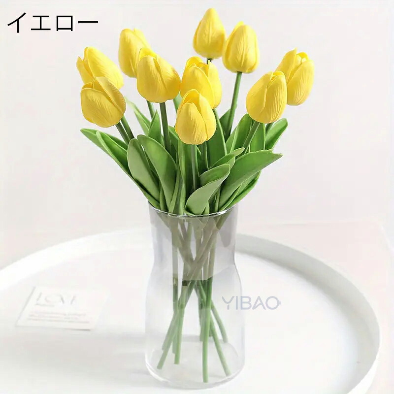 チューリップ 造花 PU フェイクフラ ホワイト オフホワイト ピンク1 ピンク2 ピンク3 ピンク4 イエロー ベージュ ブルー ダークピンク サンセットレッド レッド パープル 15個セット 20個セット