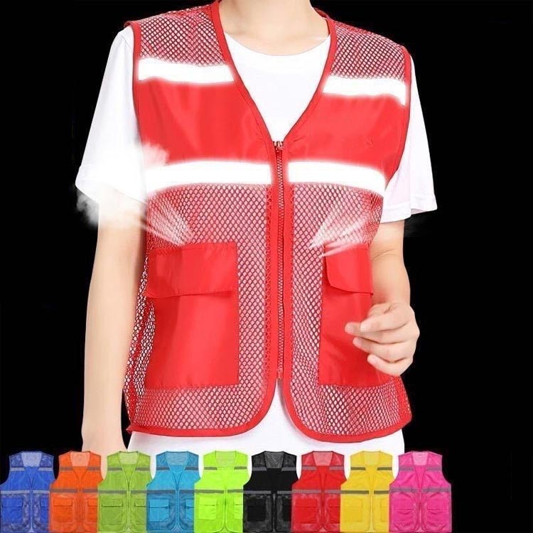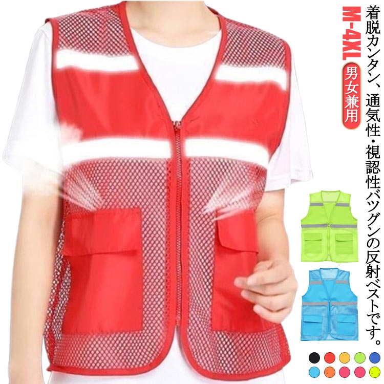 反射ベスト メッシュベスト 防災グッズ レッド ブラック イエロー グリーン ブルー 水色 オレンジ ローズレッド ダークグリーン イエローグリーン M L XL 2XL 3XL 4XL