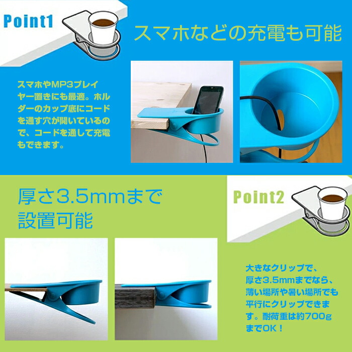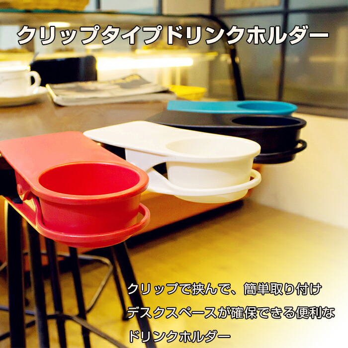 クリップタイプ ドリンクホルダー 机 日用品雑貨 文房具 手芸 特集 ブラック ホワイト グリーン ブルー レッド