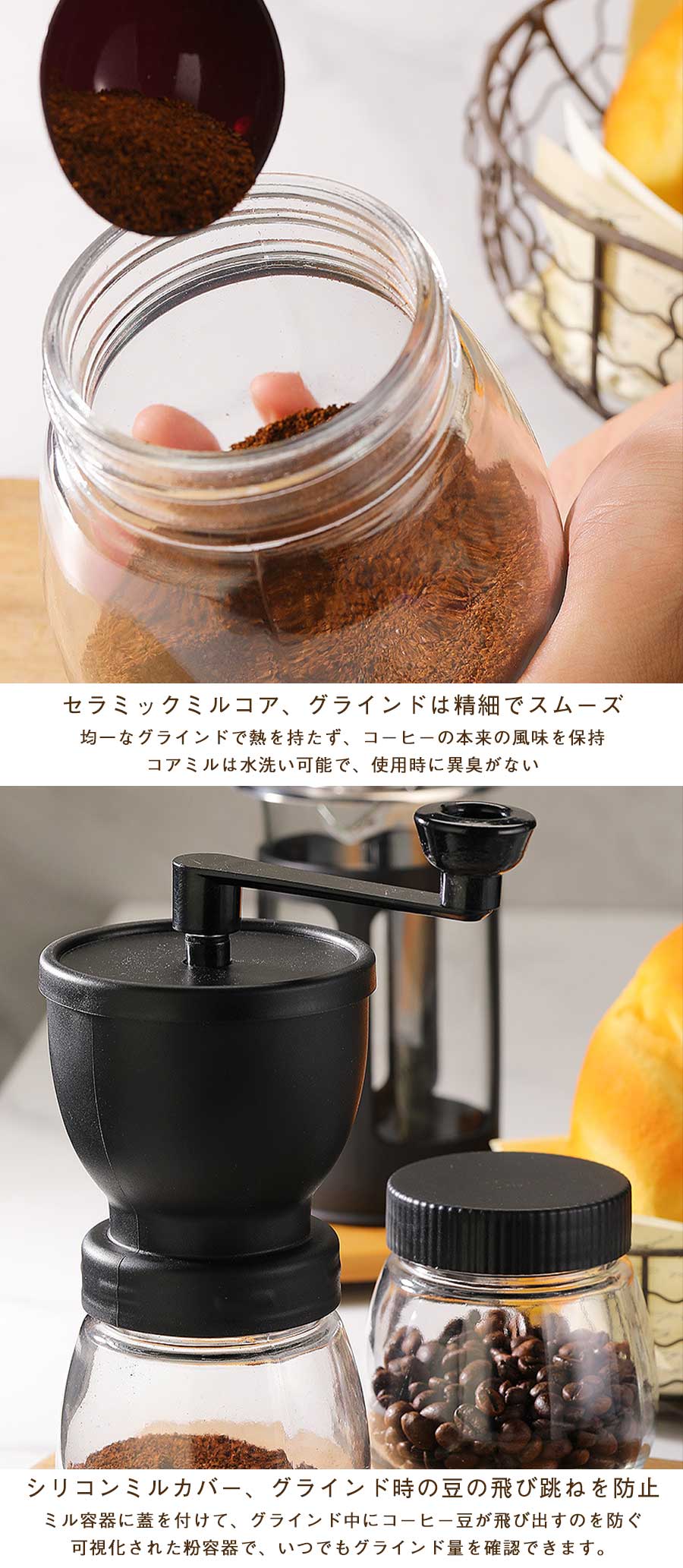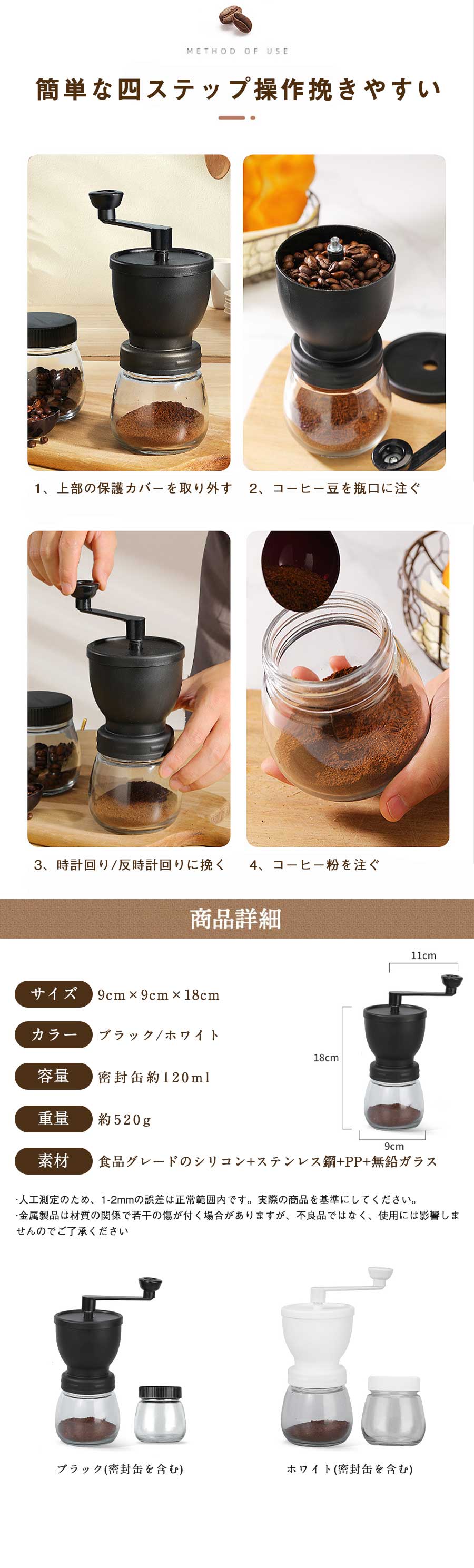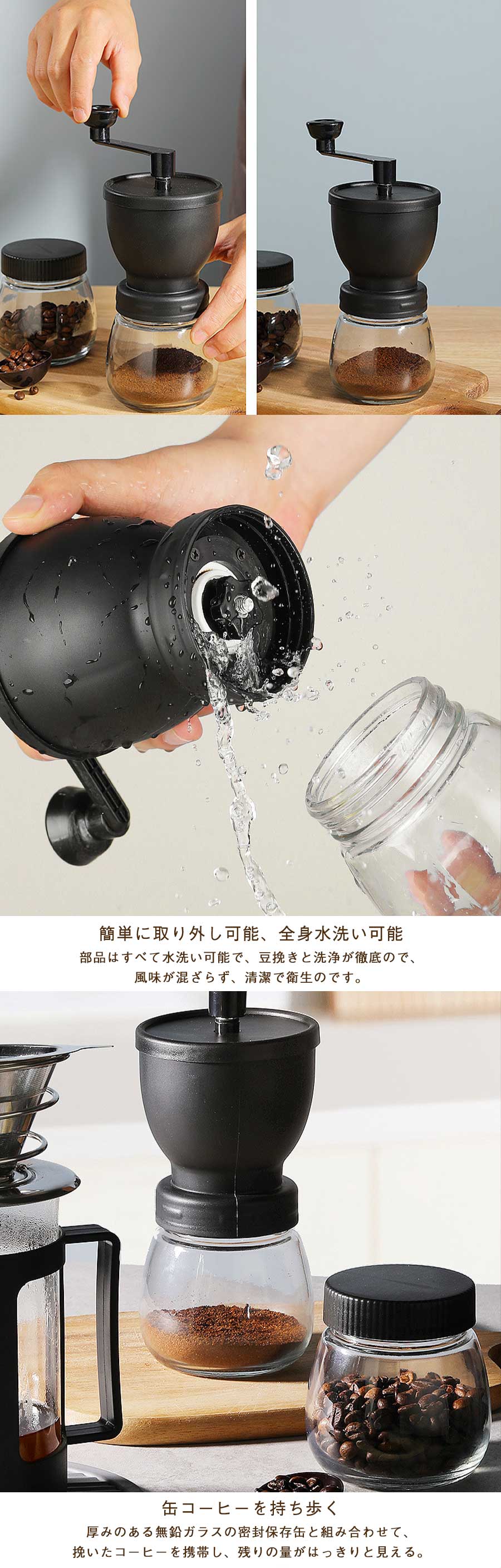 手挽きコーヒーミル 手動 珈琲ミル コ キッチン用品 食器 調理器具 続々入荷中 ホワイト ブラック