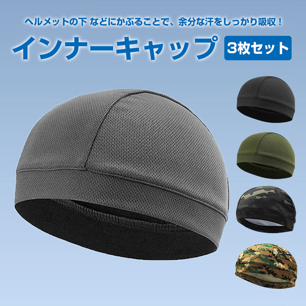 インナーキャップ 3枚組 メッシュ ヘ スポーツ アウトドア 豊富な品揃え ブラック グレー アーミーグリーン デジタル迷彩 黒色迷彩