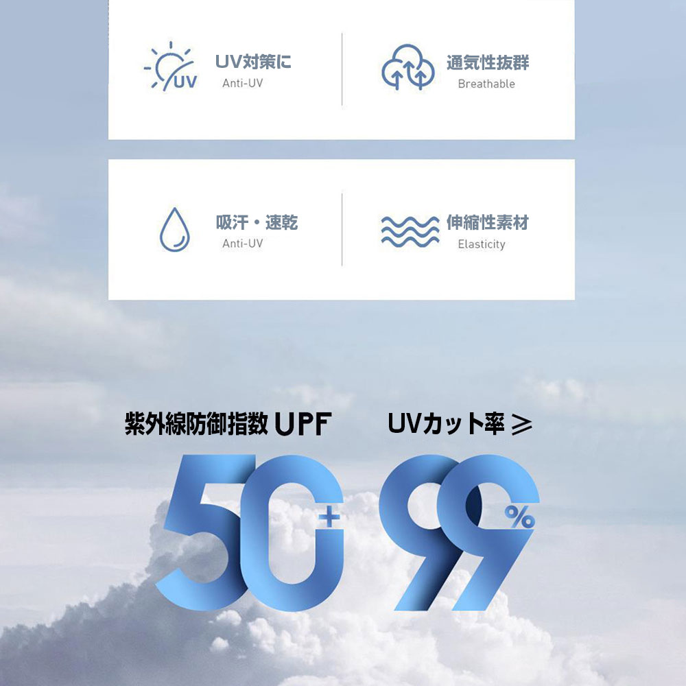 紫外線防御指数UPF50+、UV対策におすすめ。紫外線カット効果で、有害な紫外線をブロックします。