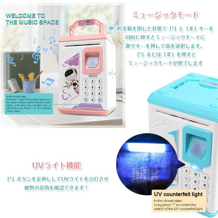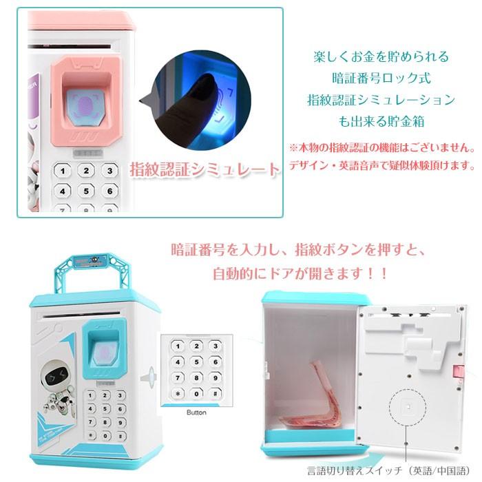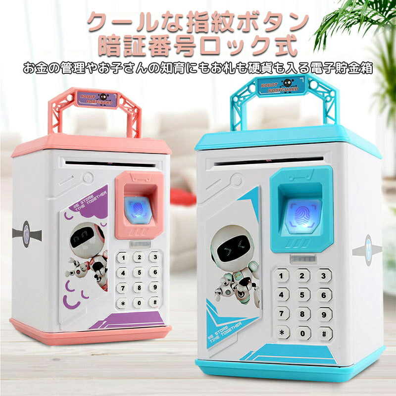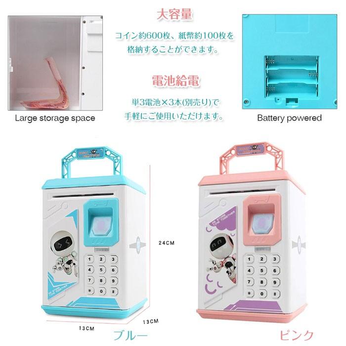 電子貯金箱 お札 硬貨 暗証番号 ロッ ブルー ピンク