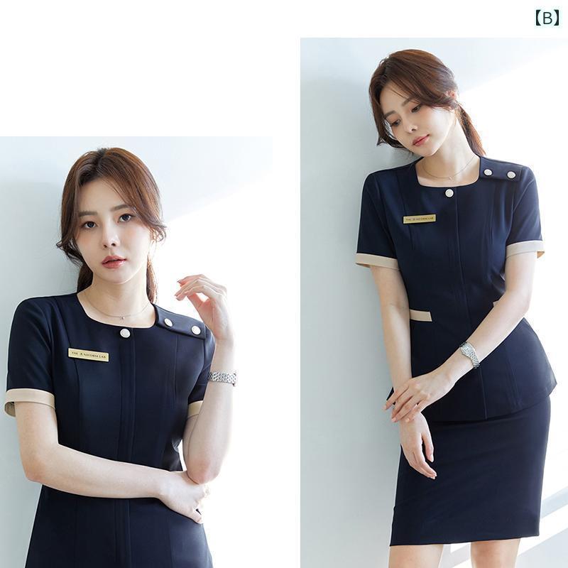 エステ ユニフォーム 制服 サロン ス A:ネイビー半袖ネイビーパンツ B:ネイビー半袖ネイビースカート C:ライトカーキ半袖ネイビーパン D:ライトカーキ半袖ネイビースカ S M L XL XXL XXXL