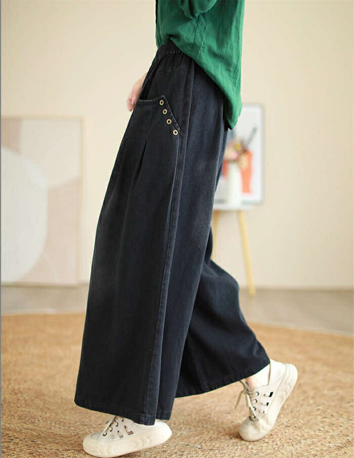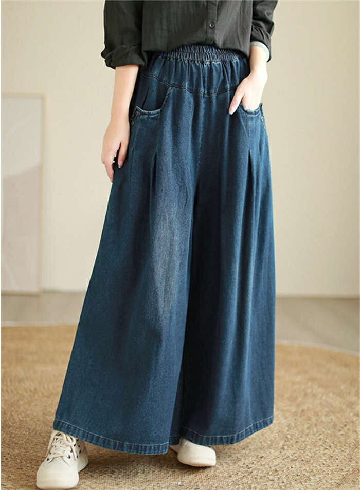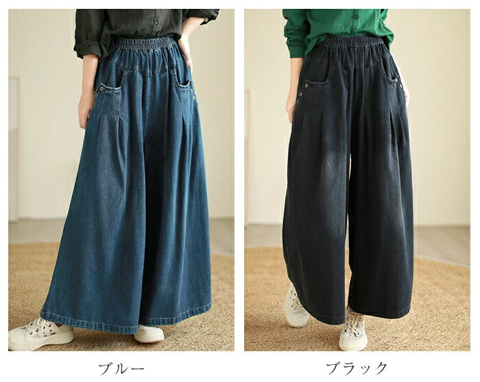 デニムワイドパンツ パンツ デニムパン レディースファッション 続々登場 ブルー ブラック L XL