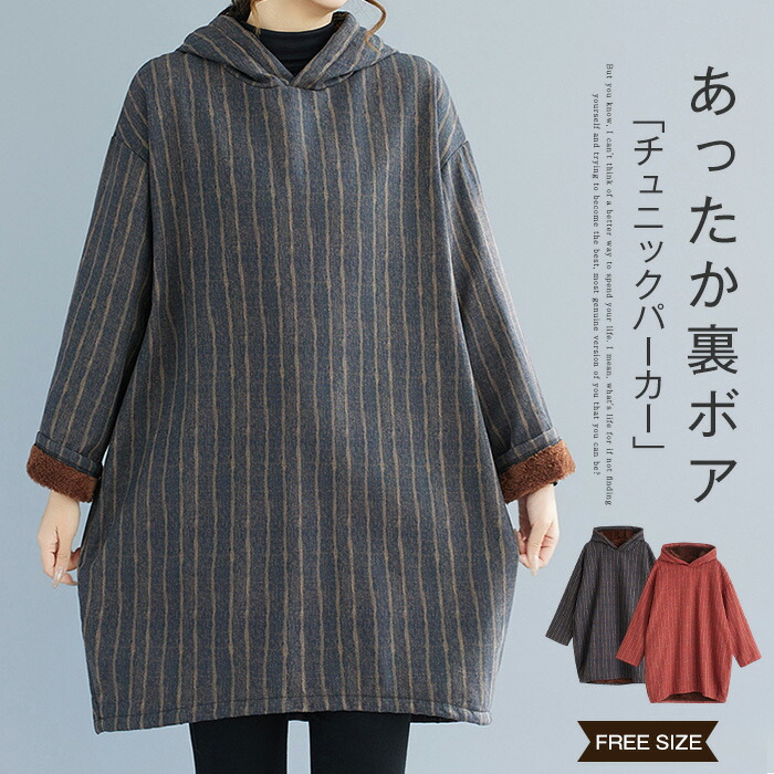 裏起毛 チュニック パーカー 裏ボア レディースファッション 新作 グレー オレンジ