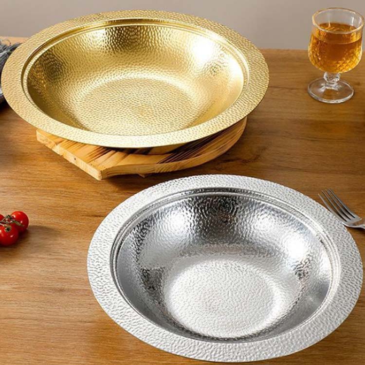 寄せ鍋 しゃぶ鍋 ステンレス 槌目 I ゴールド シルバー 26cm 28cm 30cm