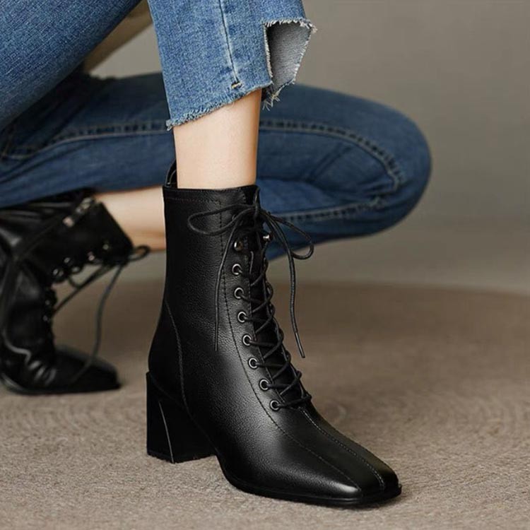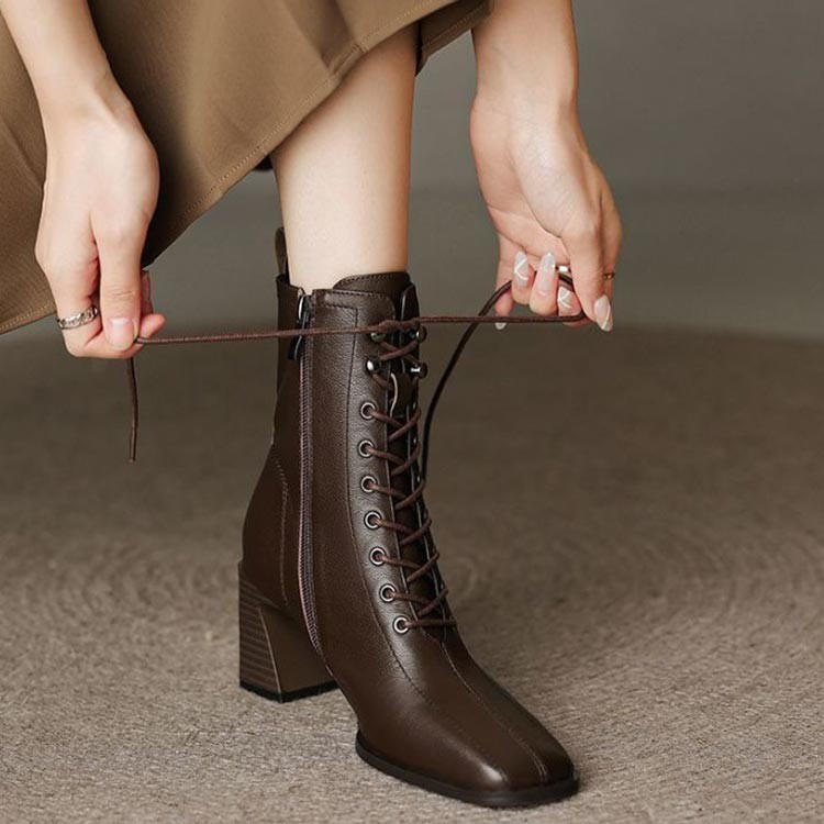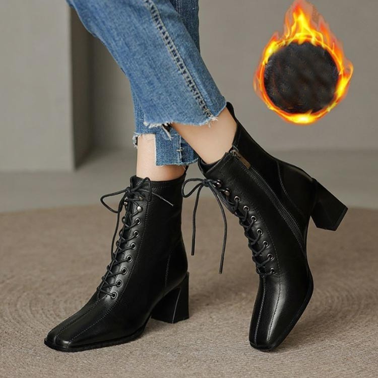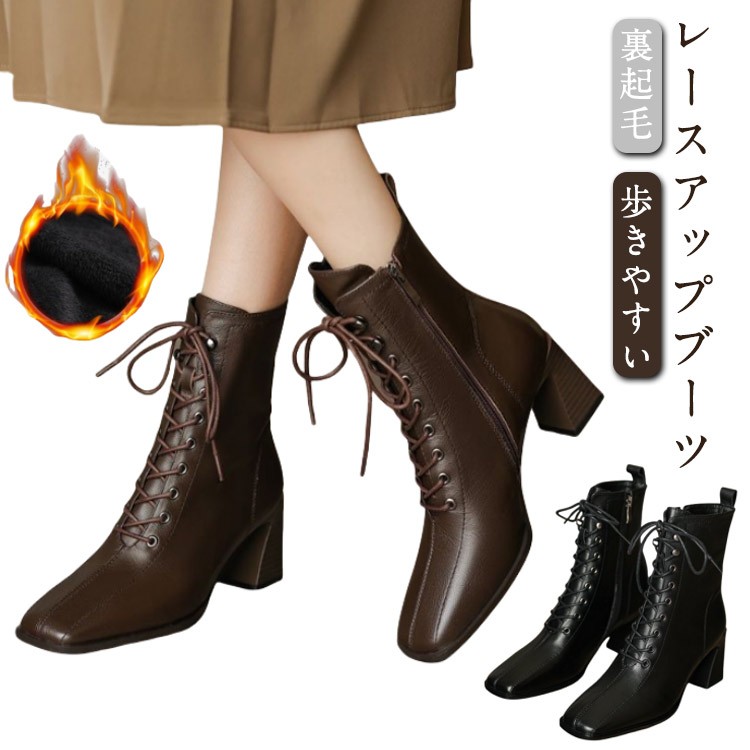 レースアップ ブーツ スクエアトゥ シ レディース靴 スノーシューズ 続々入荷中 ブラック コーヒー 35(22.5cm) 36(23cm) 37(23.5cm) 38(24cm) 39(24.5cm) 40(25cm)