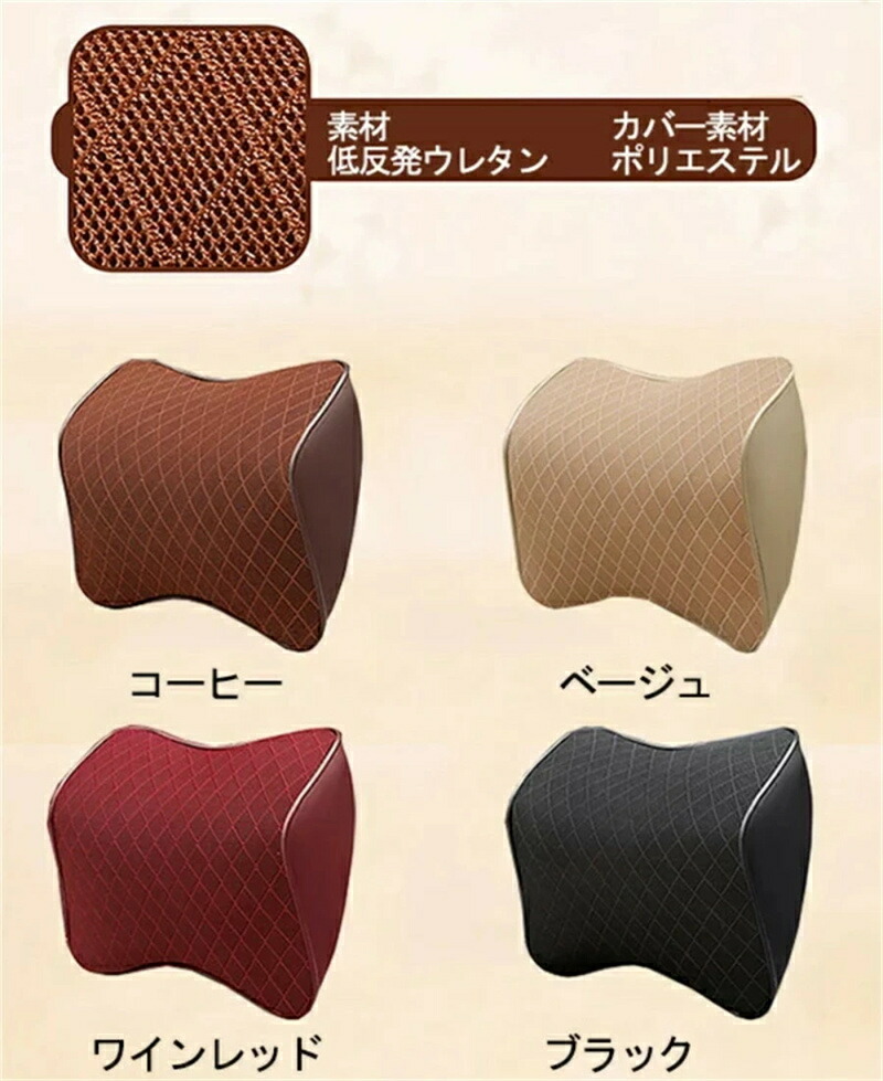 車用クッション ネックパッド 低反発 Aブラック Aベージュ Aワインレッド Aコーヒー Bブラック Bベージュ Bワインレッド Bコーヒー