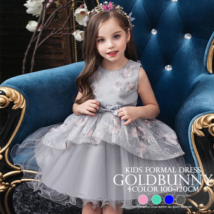 子供ドレス 流れる様なオーガンジーにフ キッズ ドレス 早い者勝ち 100cm 110cm 120cm グレー ブルー ミント ピンク