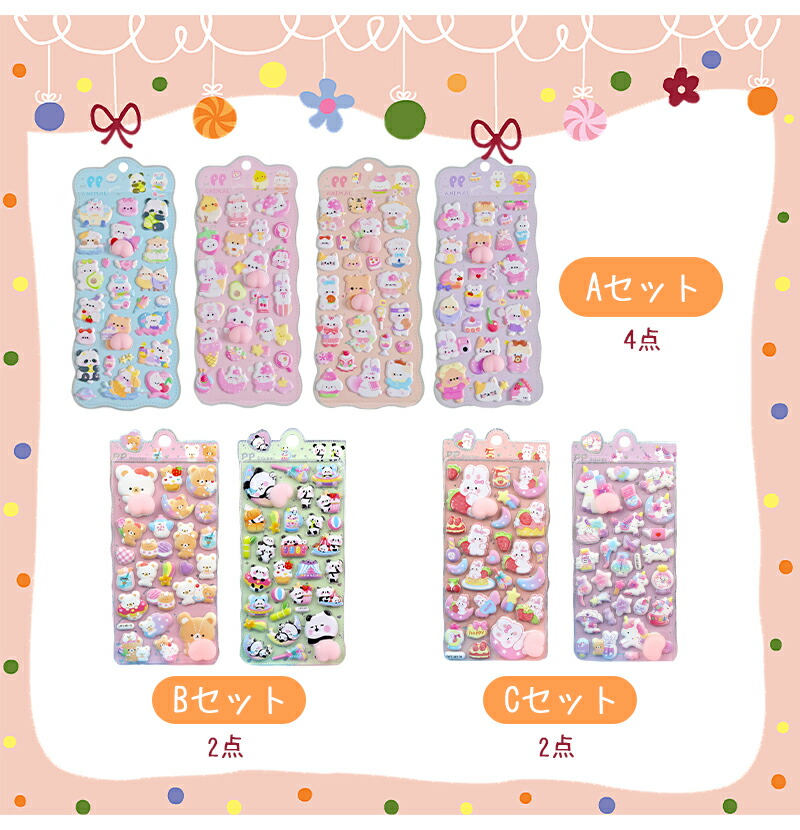 おしりぷにぷにシール 3dシール 立体 文房具 事務用品 ラベル ステッカー シール ステッカー 早い者勝ち A B 6枚セット 4枚セット Aセット Bセット Cセット