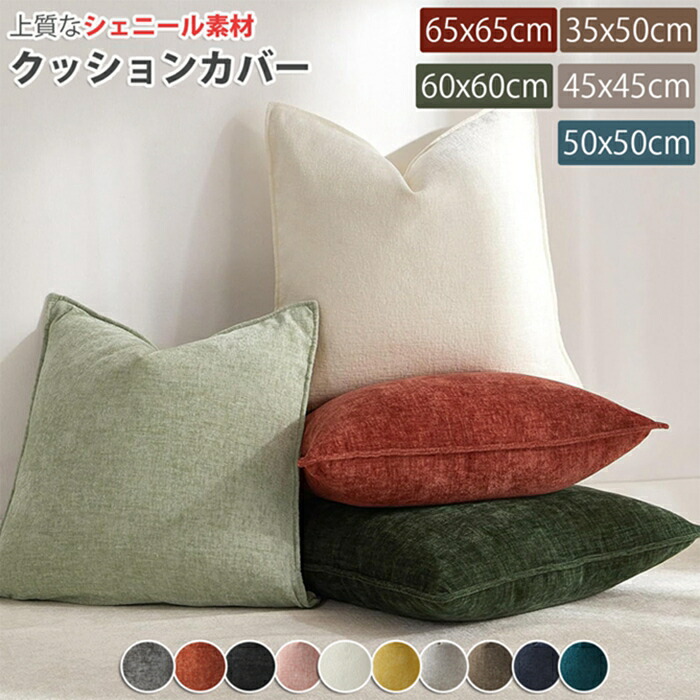 クッションカバー シェニール 北欧 3 BR NV BU LGR YW PK KK GR BK BG OG 30x50cm 45x45cm 50x50cm 60x60cm 65x65cm