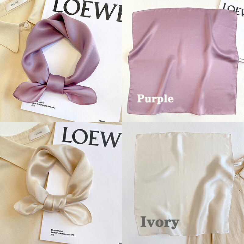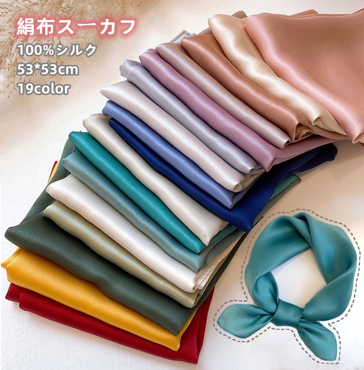 上品 スカーフ シルク100% 絹布 バッグ 小物 ブランド雑貨 続々登場 white yellow light gray lake blue sky blue dark orange dark gray red pink wine red purple pea green navy ivory black