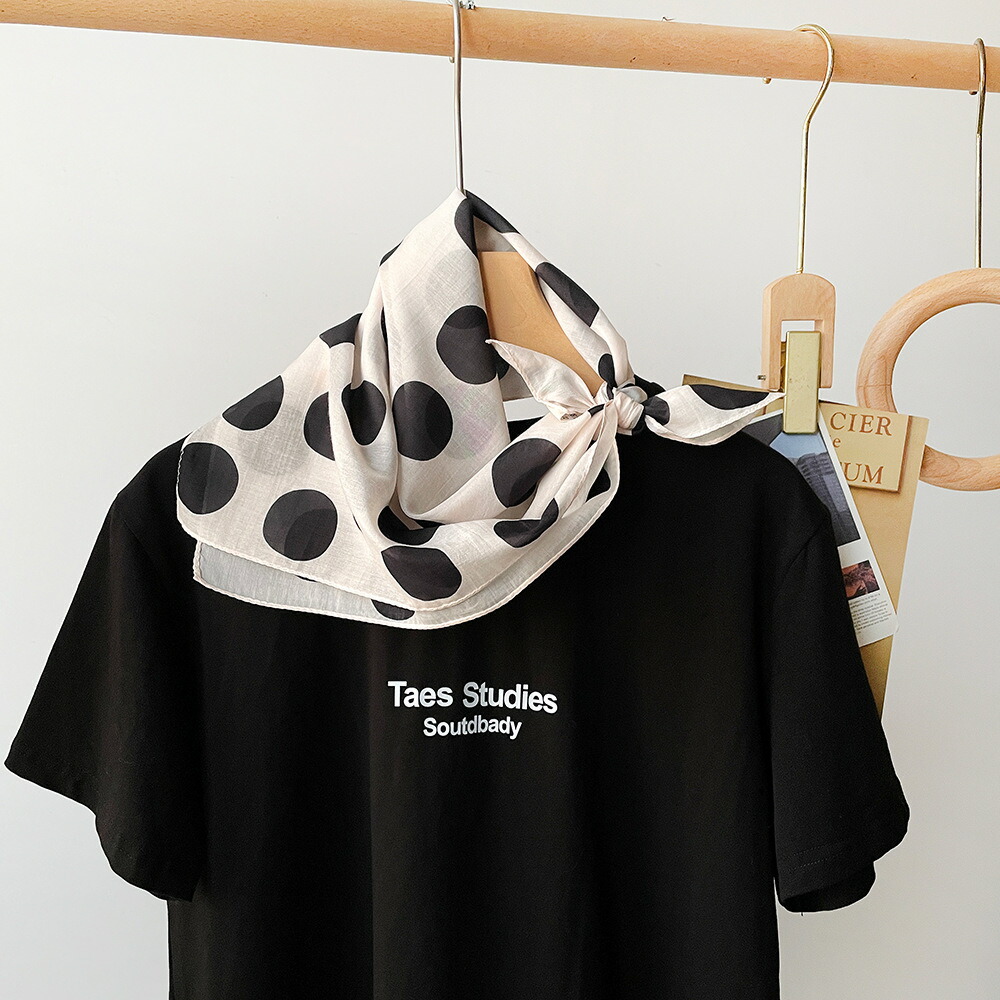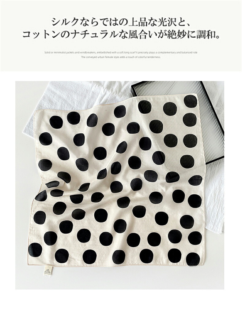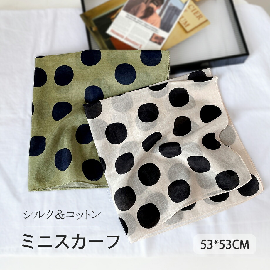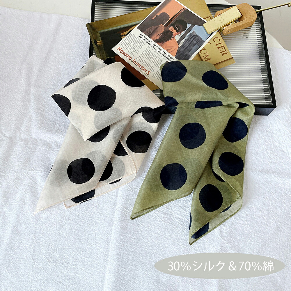 混紡 シルク30% 水玉模様 53*5 マフラー スカーフ レディーススカーフ 超目玉商品 ベージュ&水玉 グリーン&水玉