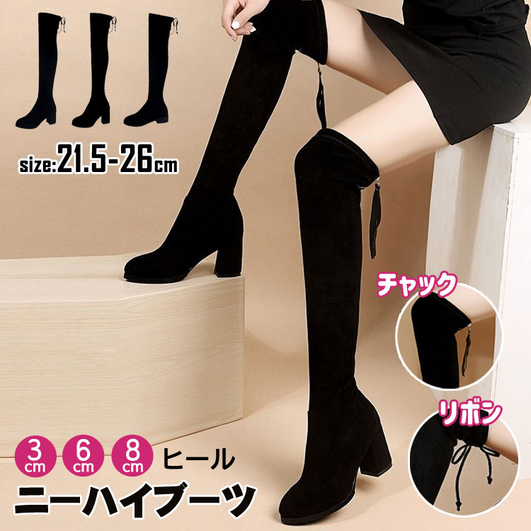 レディース ロングブーツ ニーハイブー 靴 特集 (ヒール3cm )リボンタイプ (ヒール3cm ) チャックタイプ ブラック(ヒール6cm )リボンタイプ (ヒール6cm )チャックタイプ (ヒール8cm )リボンタイプ (ヒール8cm )チャックタイプ 33(21.5cm) 34(22cm) 35(22.5cm) 36(23cm) 37(23.5cm) 38(24cm) 39(24.5cm) 40(25cm) 41(25.5cm) 42(26cm)