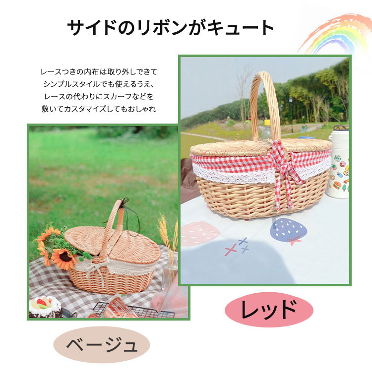 ピクニック バスケット かご かごバッ レッド(蓋付き) レッド(蓋なし) ベージュ(蓋付き) ベージュ(蓋なし) S M L