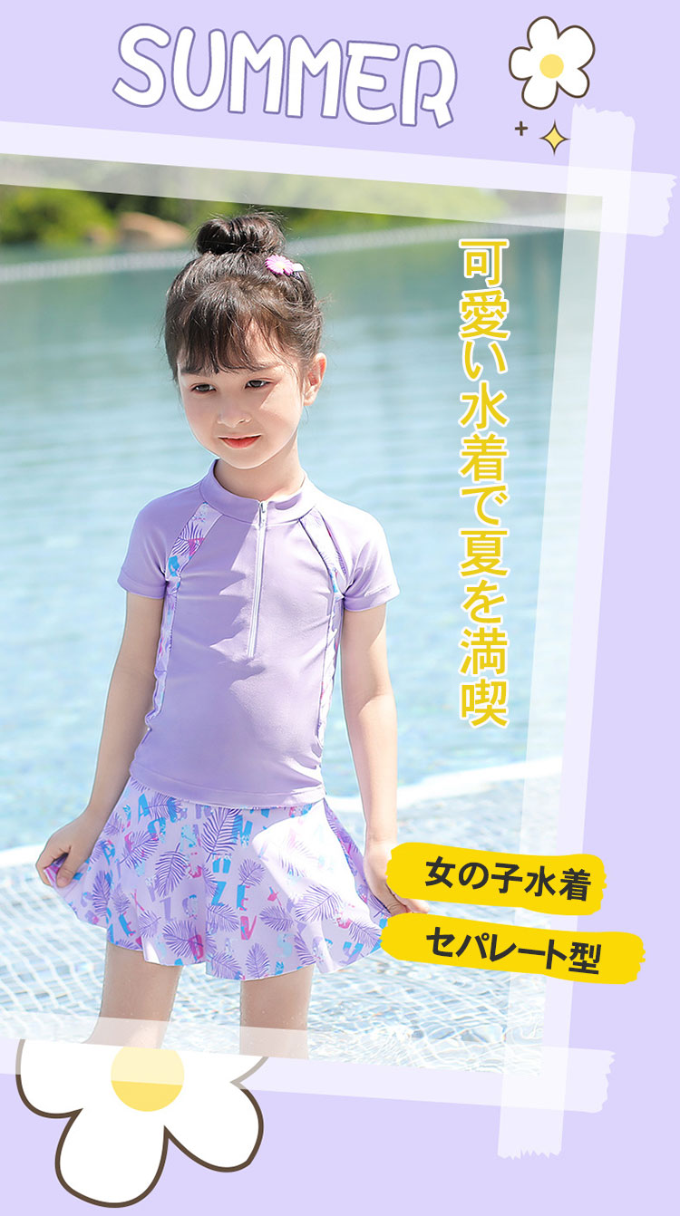 キッズ水着 女の子 セパレート型 水着 キッズ 水着 続々登場 パープル パープル-B Type-C(パープル) Type-C(ピンク) Type-D(パープル) Type-D(ブラック) Type-E(グレー) Type-E(ピンク) L(100-110) XL(110-120) 2XL(120-130) 3XL(130-145) 4XL(145-160) 5XL(160-170)