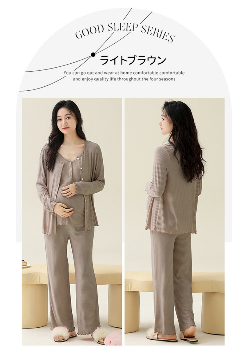 マタニティ パジャマ 3点セット 授乳 キッズ ベビー マタニティ 人気 ページュ ピンク ライトブラウン あずき パープル ブルー ミントグリーン M L XL 2XL