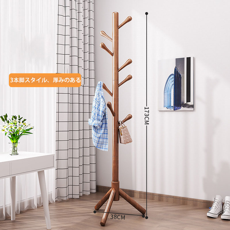 木製 コートハンガー ハンガーラック コート掛け かばん掛け 帽子掛けスタンド 枝型設計 組立て簡単 省スペース 安定性 収納力抜群 頑丈 衣類収納 玄関収納 移動 オフィス シンプル スリム