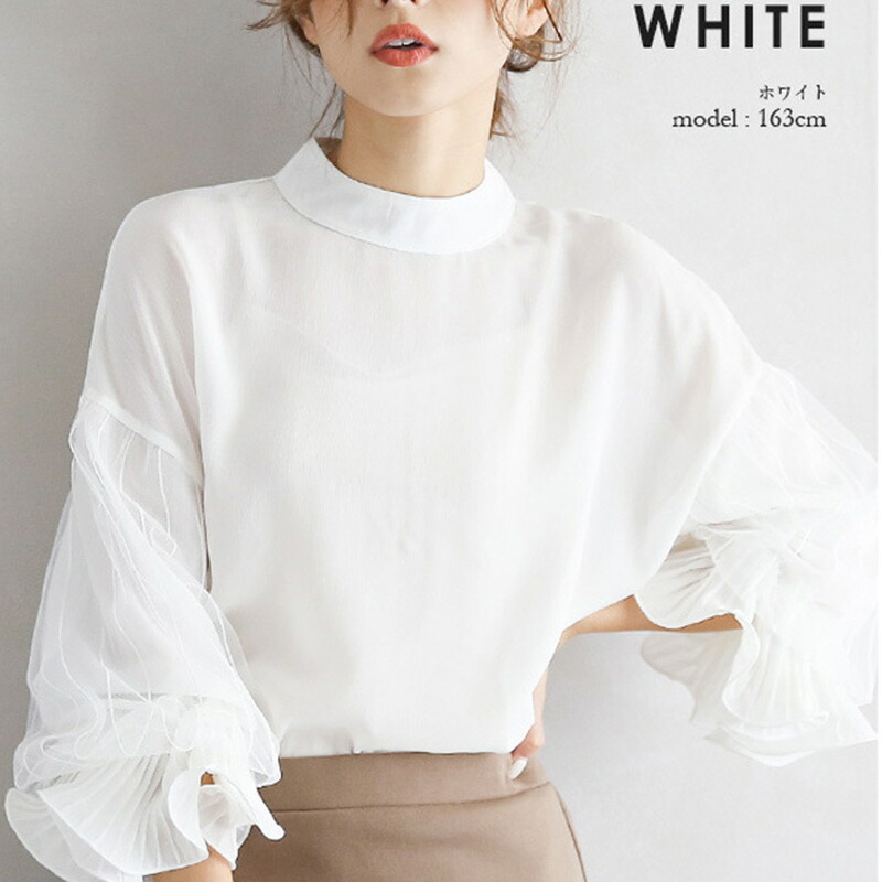シフォンブラウス シアーブラウス ボリューム袖