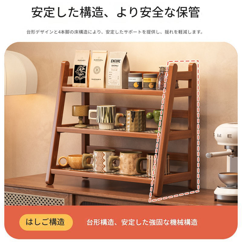 キッチンラック コップホルダー 収納棚 A B ブラウン 原色